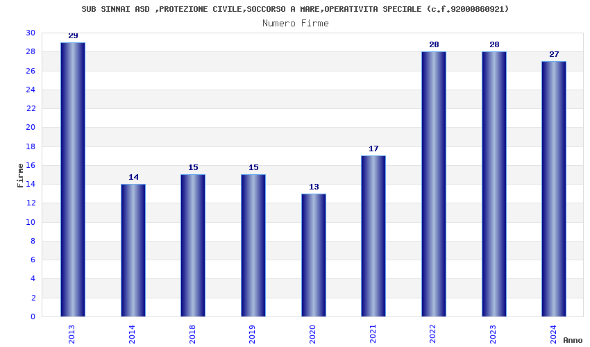 | Anno | Firme | Importi | Media | Naz. | Reg. | Prov. | Comu. |