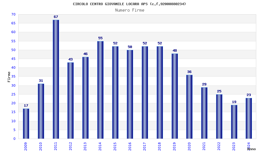 | 2011 | 67 | 1.666,64 | 24,88 | 16.330 | 1.418 | 310 | 7 |