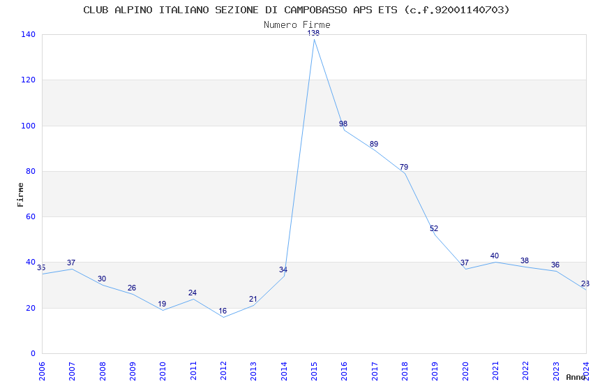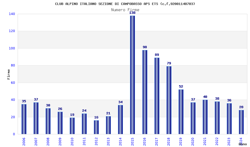 | 2015 | 138 | 3.975,63 | 28,81 | 13.128 | 41 | 29 | 19 |