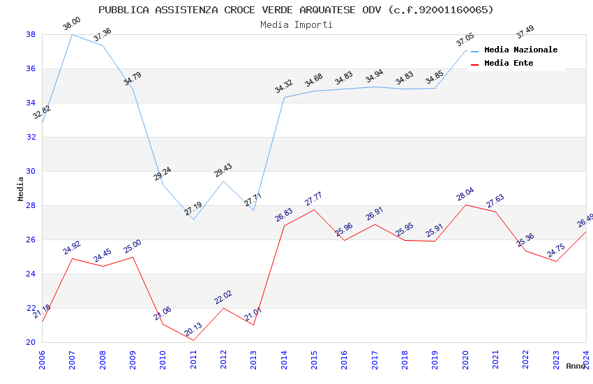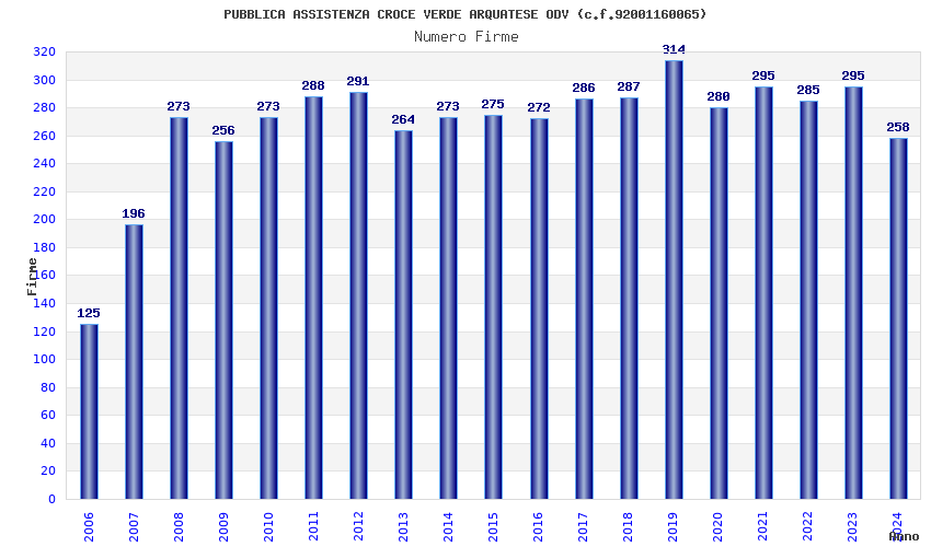 | Anno | Firme | Importi | Media | Naz. | Reg. | Prov. | Comu. |