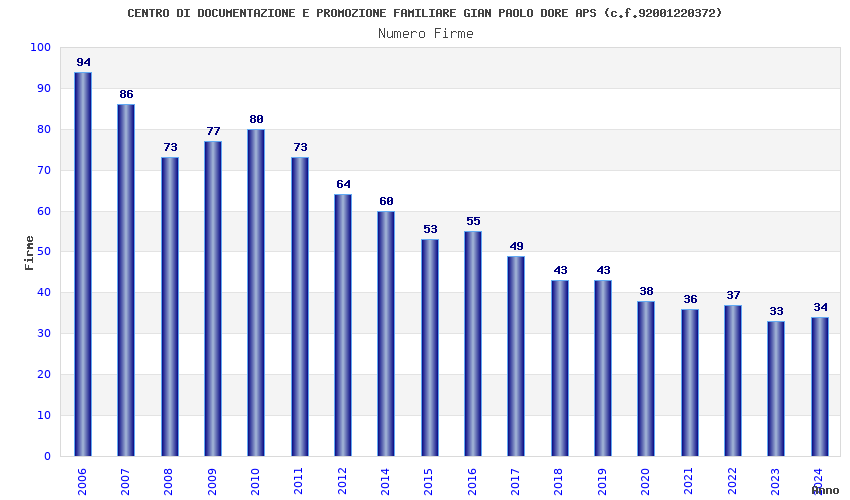 | Anno | Firme | Importi | Media | Naz. | Reg. | Prov. | Comu. |