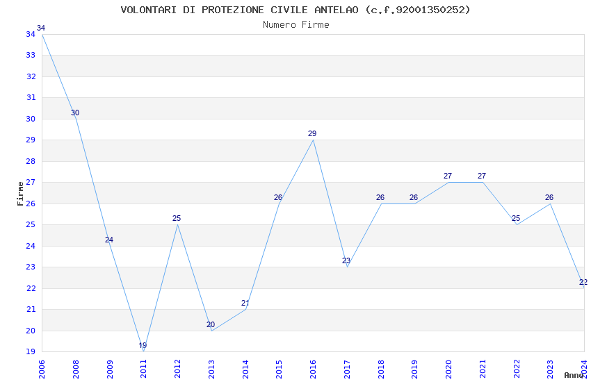 | 2019 | 26 | 1.021,67 | 39,30 | 35.157 | 3.309 | 203 | 7 |