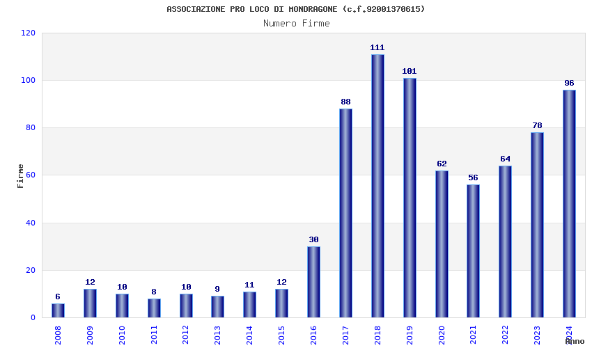 | Anno | Firme | Importi | Media | Naz. | Reg. | Prov. | Comu. |