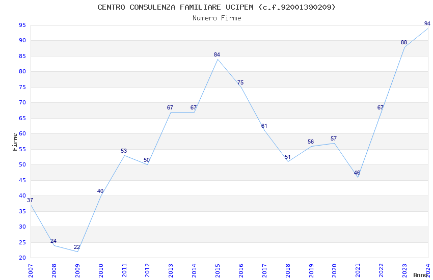 | 2014 | 67 | 1.557,43 | 23,25 | 25.130 | 5.594 | 201 | 11 |