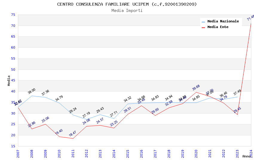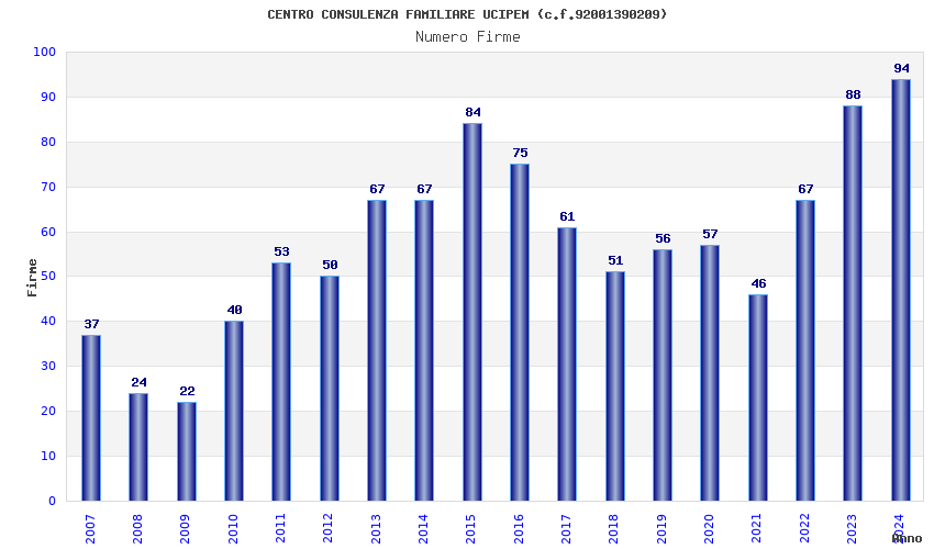 | Anno | Firme | Importi | Media | Naz. | Reg. | Prov. | Comu. |