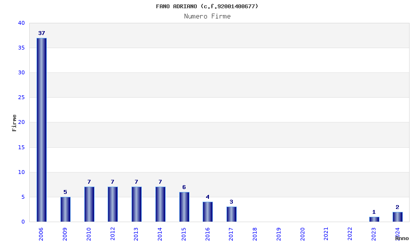 | Anno | Firme | Importi | Media | Naz. | Reg. | Prov. | Comu. |