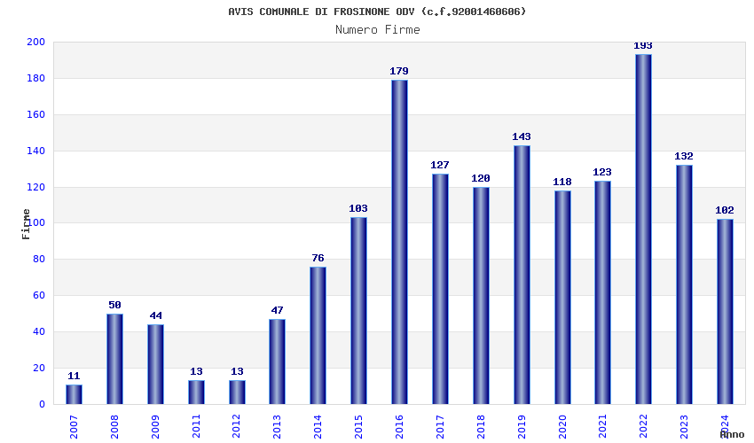 | Anno | Firme | Importi | Media | Naz. | Reg. | Prov. | Comu. |