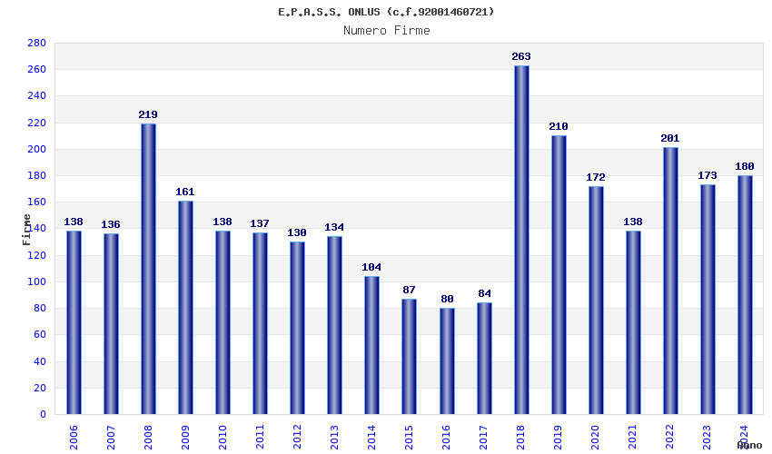| Anno | Firme | Importi | Media | Naz. | Reg. | Prov. | Comu. |