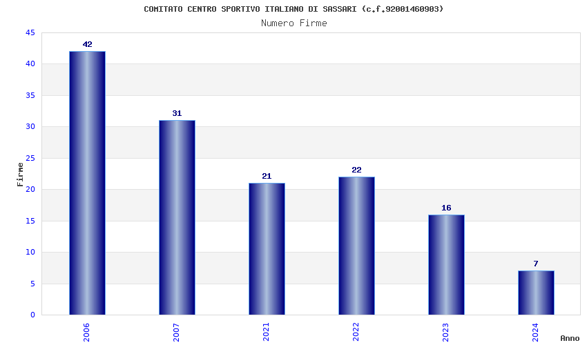 | Anno | Firme | Importi | Media | Naz. | Reg. | Prov. | Comu. |