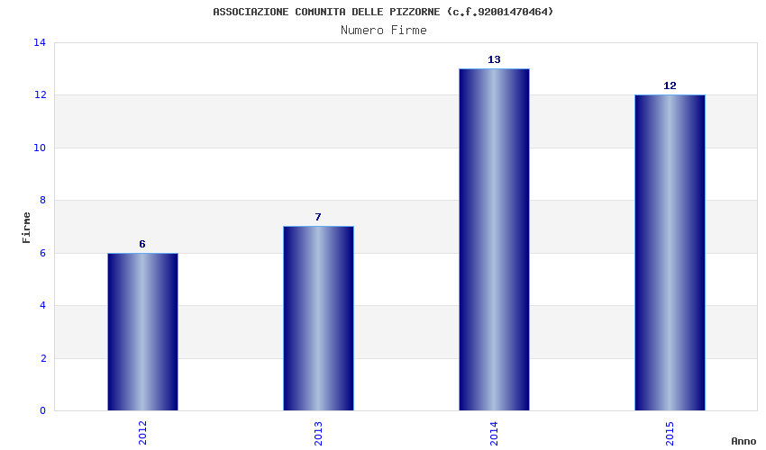 | Anno | Firme | Importi | Media | Naz. | Reg. | Prov. | Comu. |