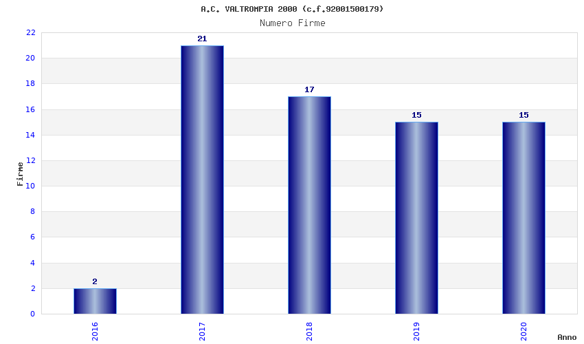 | Anno | Firme | Importi | Media | Naz. | Reg. | Prov. | Comu. |