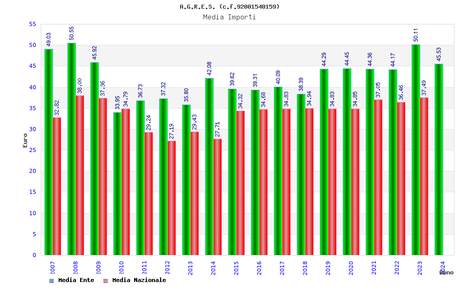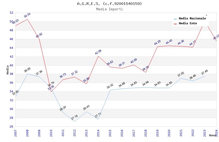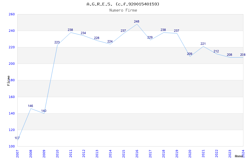 | Anno | Firme | Importi | Media | Naz. | Reg. | Prov. | Comu. |