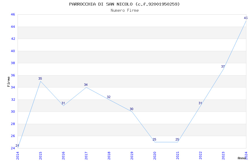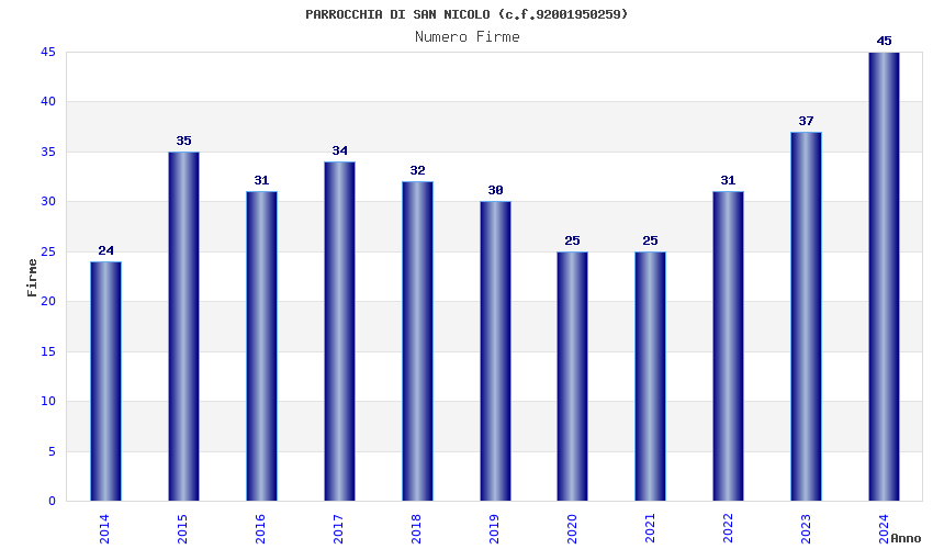 | Anno | Firme | Importi | Media | Naz. | Reg. | Prov. | Comu. |