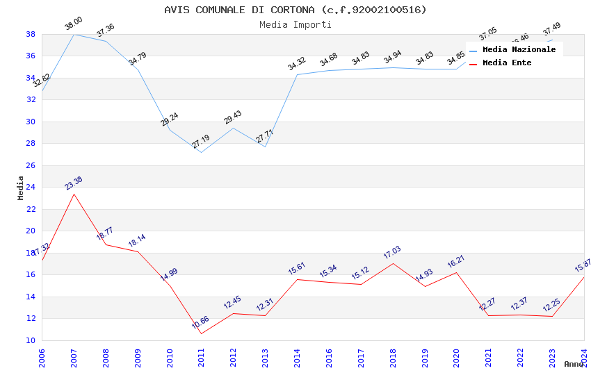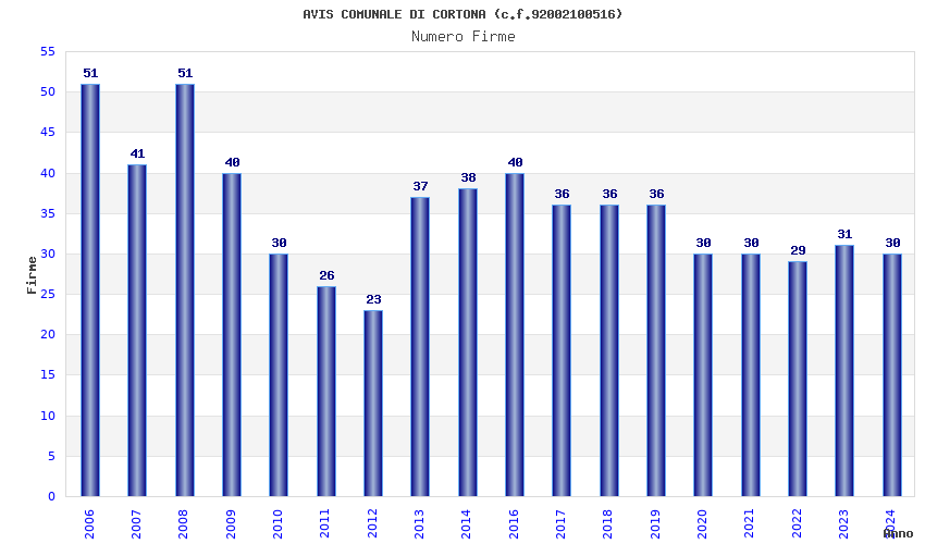 | Anno | Firme | Importi | Media | Naz. | Reg. | Prov. | Comu. |