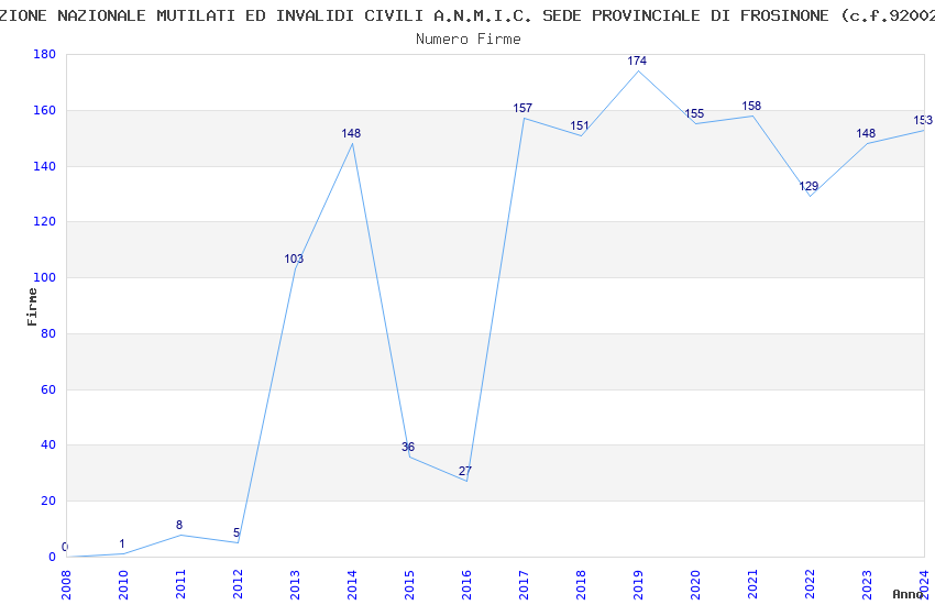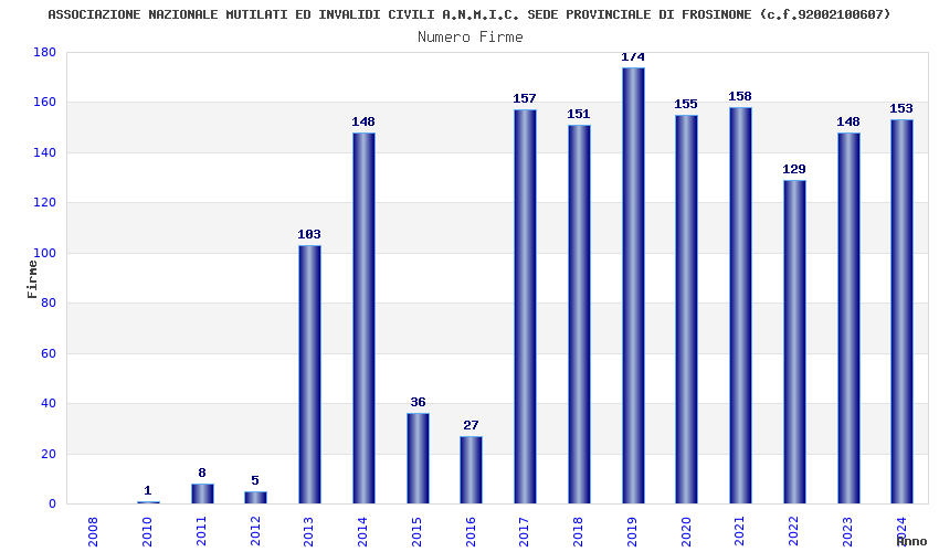 | Anno | Firme | Importi | Media | Naz. | Reg. | Prov. | Comu. |