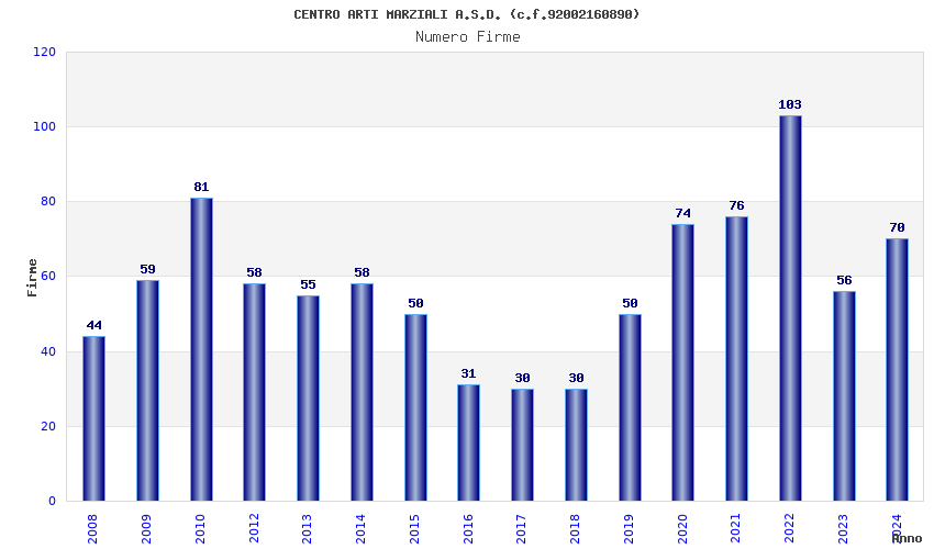 | Anno | Firme | Importi | Media | Naz. | Reg. | Prov. | Comu. |