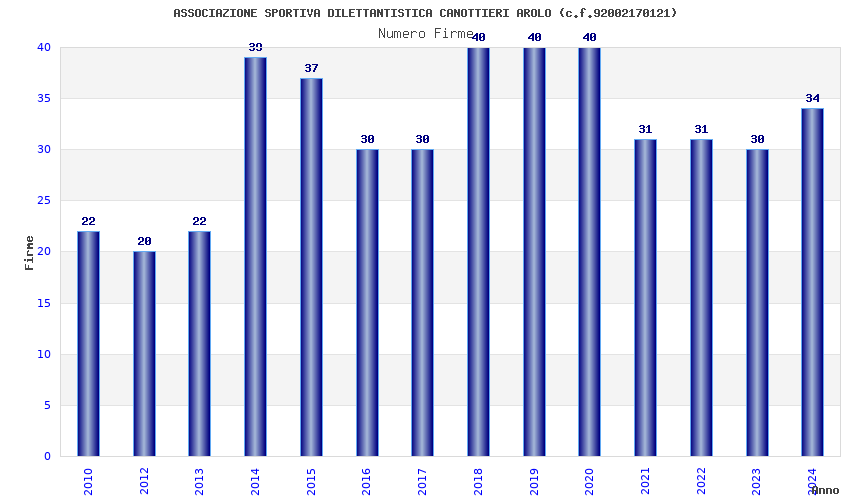 | Anno | Firme | Importi | Media | Naz. | Reg. | Prov. | Comu. |