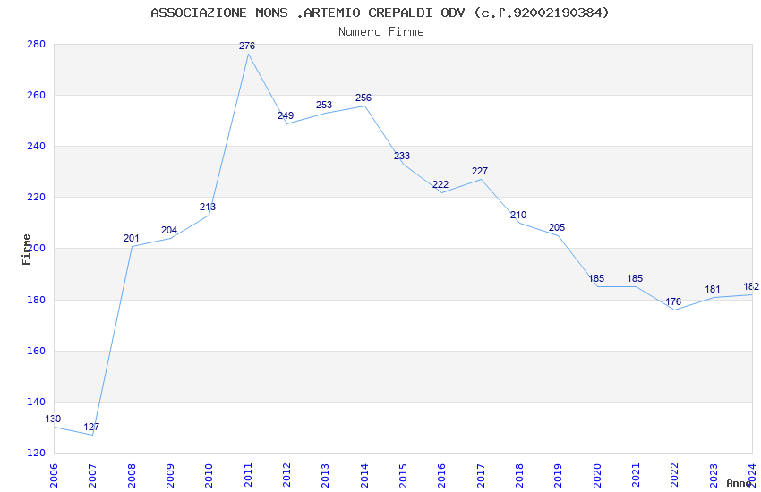 | 2006 | 130 | 3.362,10 | 25,86 | 11.123 | 1.026 | 55 | 2 |