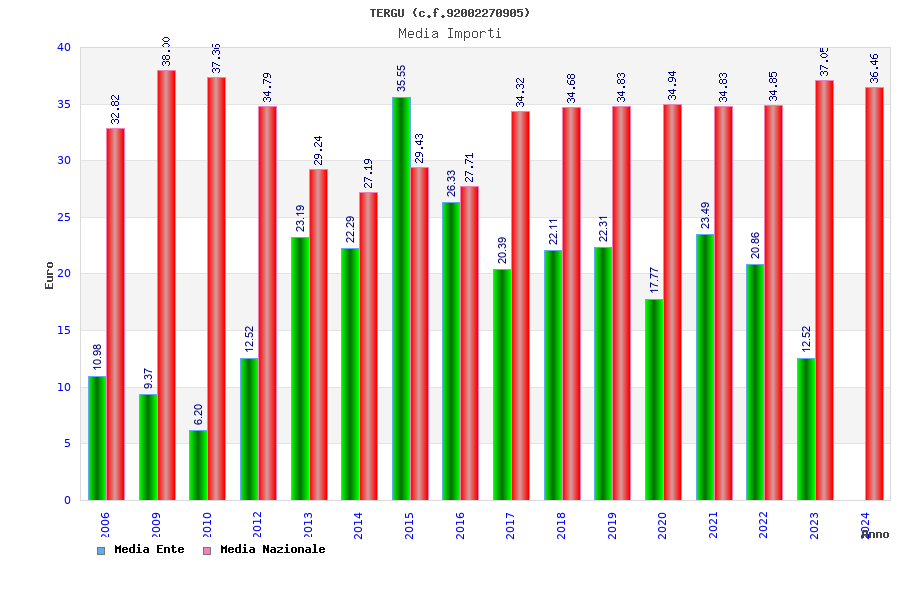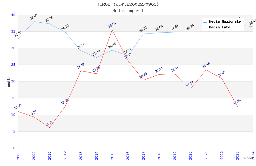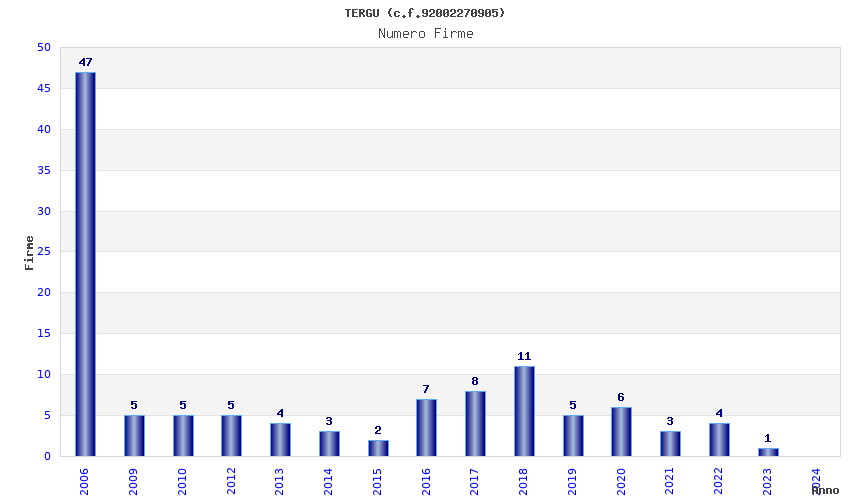 | Anno | Firme | Importi | Media | Naz. | Reg. | Prov. | Comu. |