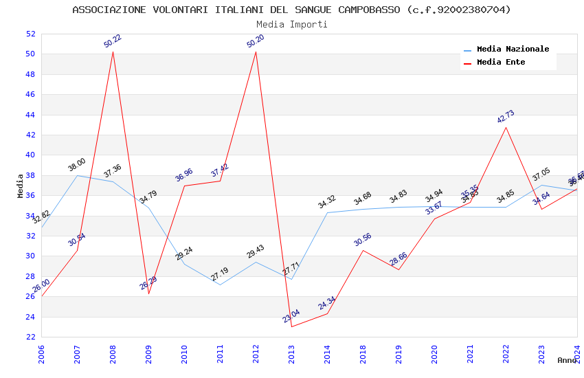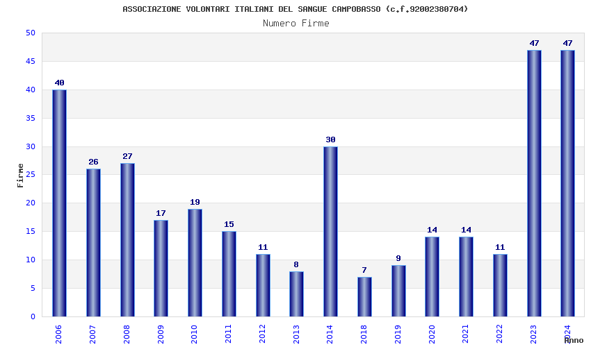 | Anno | Firme | Importi | Media | Naz. | Reg. | Prov. | Comu. |