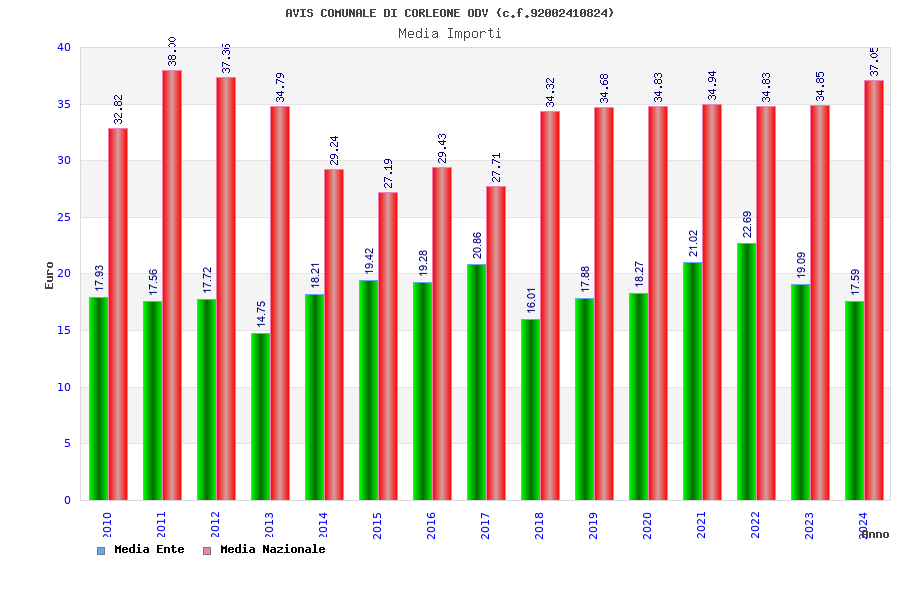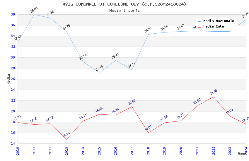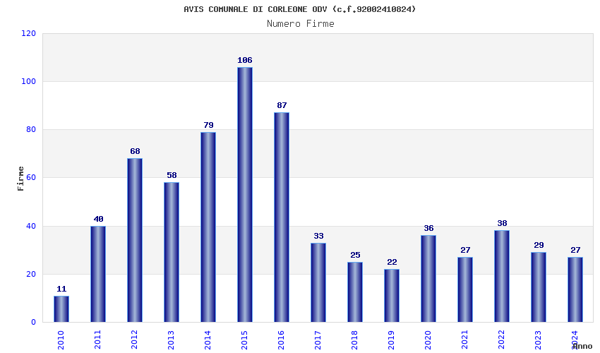 | Anno | Firme | Importi | Media | Naz. | Reg. | Prov. | Comu. |