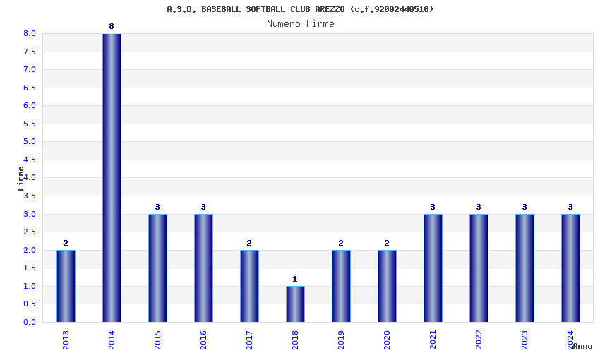 | Anno | Firme | Importi | Media | Naz. | Reg. | Prov. | Comu. |