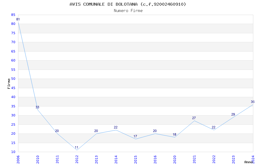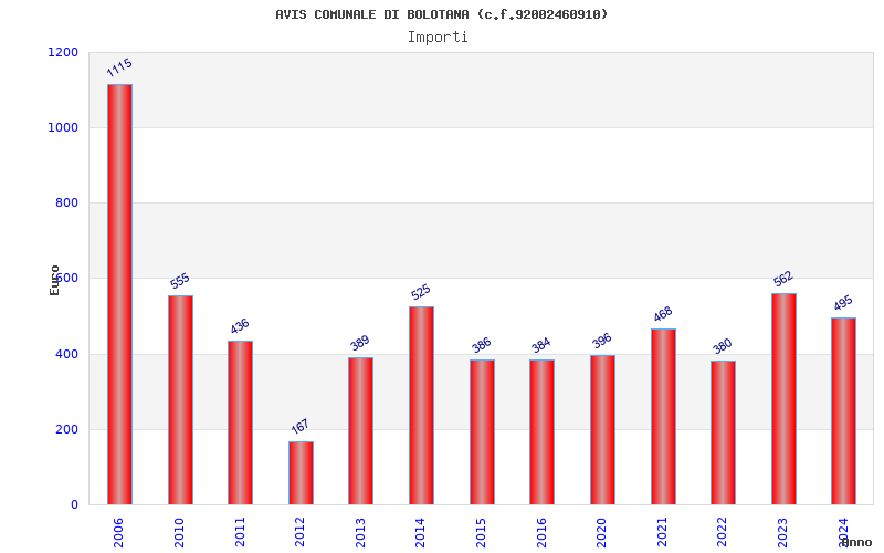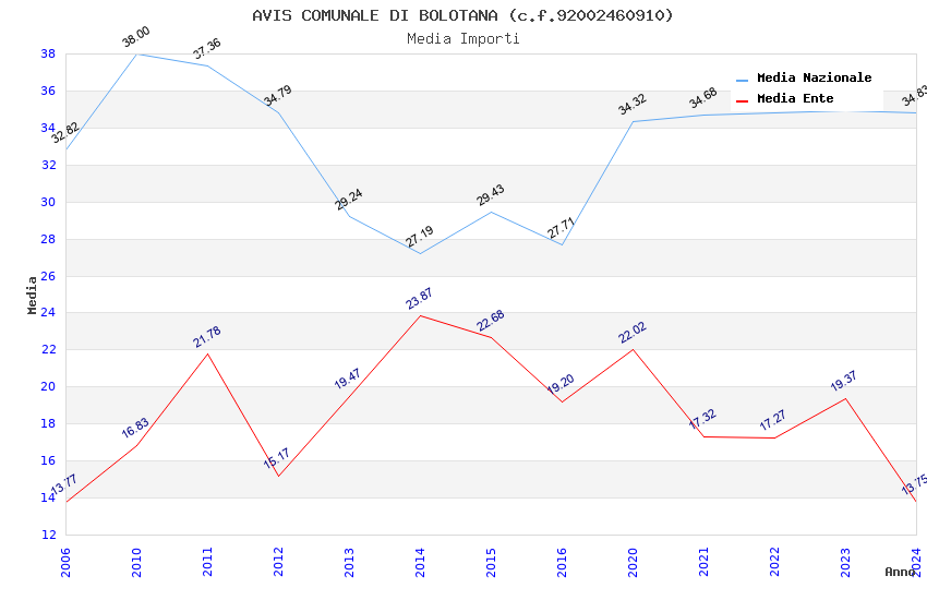 | Anno | Firme | Importi | Media | Naz. | Reg. | Prov. | Comu. |