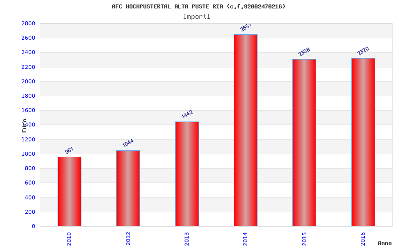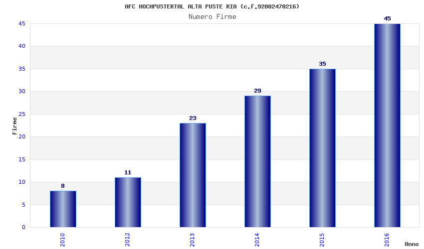 | Anno | Firme | Importi | Media | Naz. | Reg. | Prov. | Comu. |