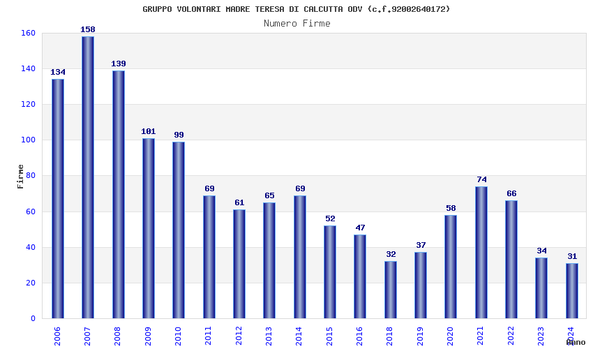 | Anno | Firme | Importi | Media | Naz. | Reg. | Prov. | Comu. |