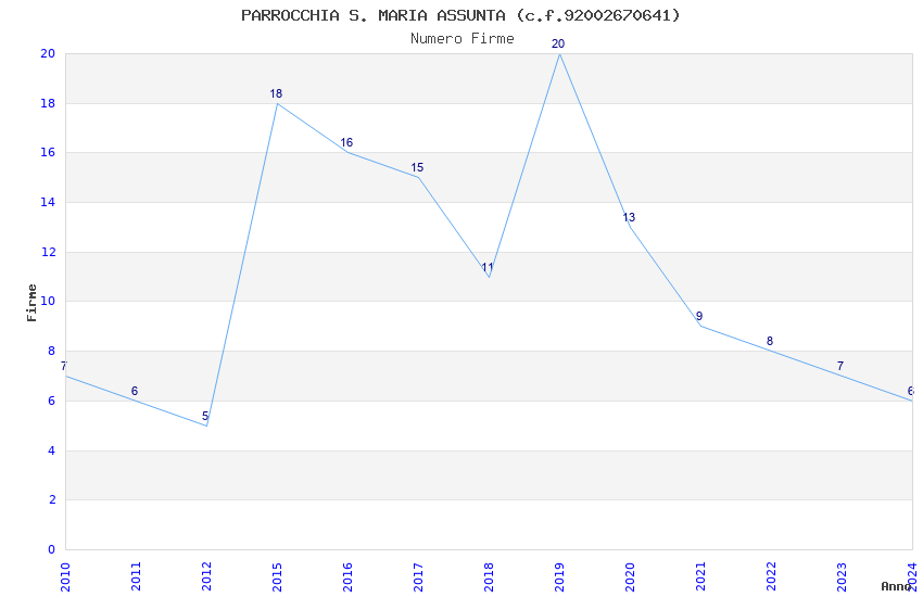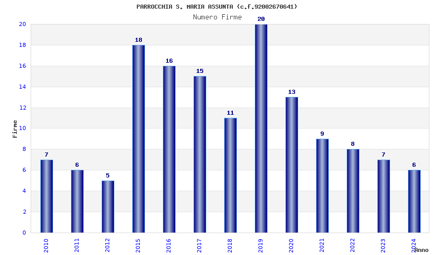 | Anno | Firme | Importi | Media | Naz. | Reg. | Prov. | Comu. |