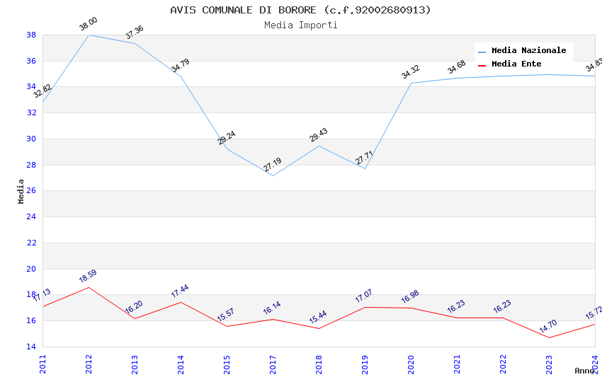 | Anno | Firme | Importi | Media | Naz. | Reg. | Prov. | Comu. |
