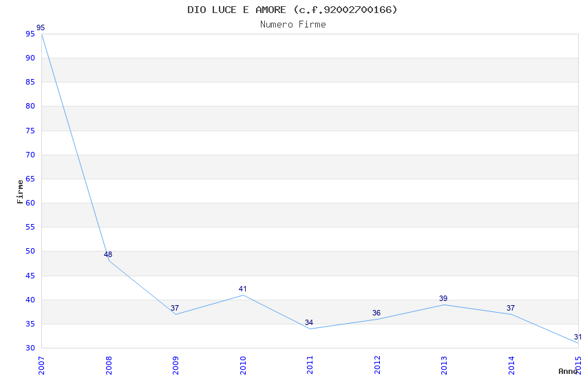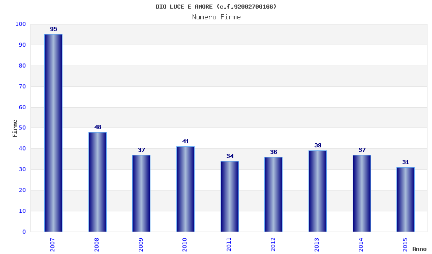 | Anno | Firme | Importi | Media | Naz. | Reg. | Prov. | Comu. |