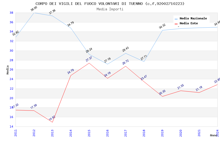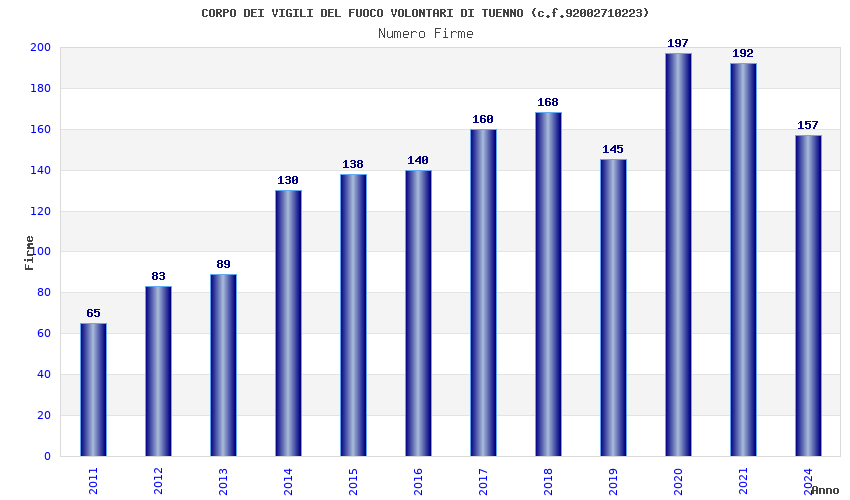 | Anno | Firme | Importi | Media | Naz. | Reg. | Prov. | Comu. |