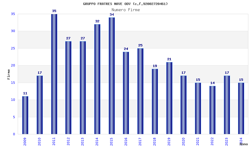 | Anno | Firme | Importi | Media | Naz. | Reg. | Prov. | Comu. |