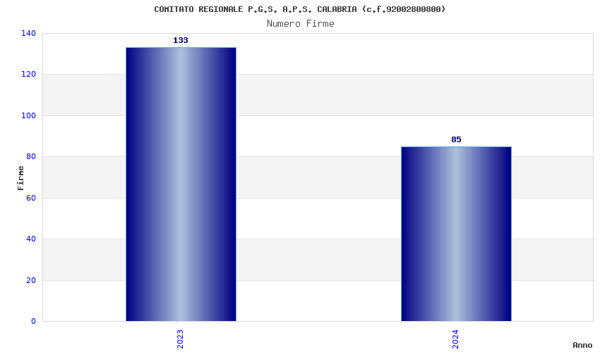 | Anno | Firme | Importi | Media | Naz. | Reg. | Prov. | Comu. |