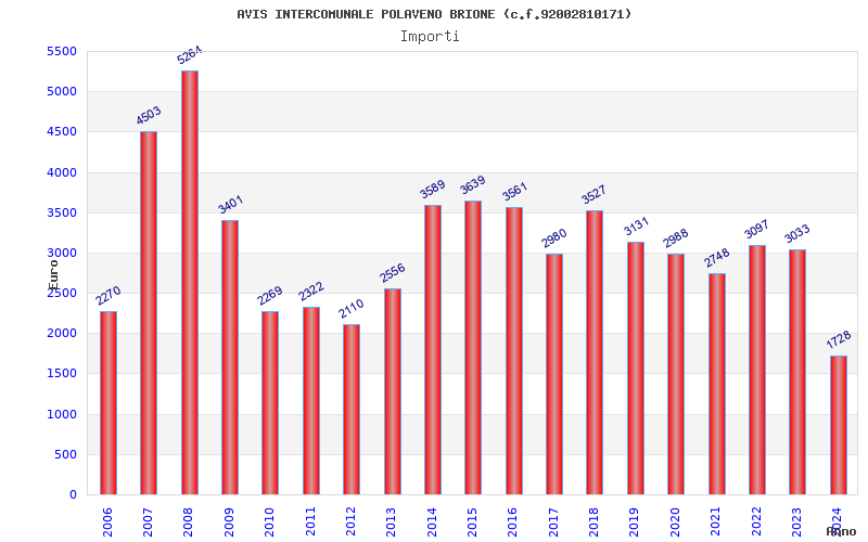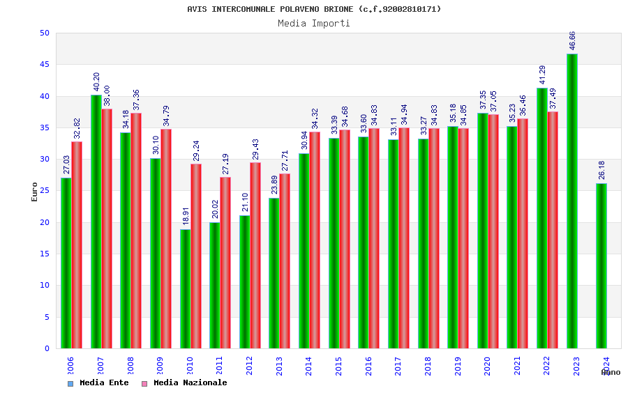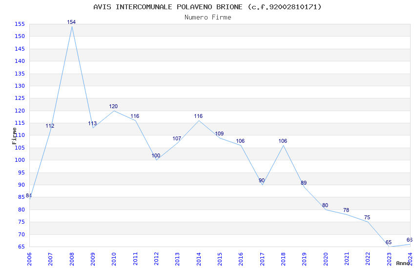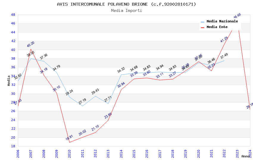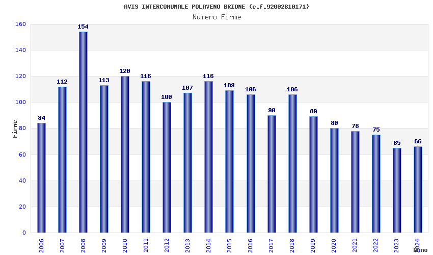| Anno | Firme | Importi | Media | Naz. | Reg. | Prov. | Comu. |