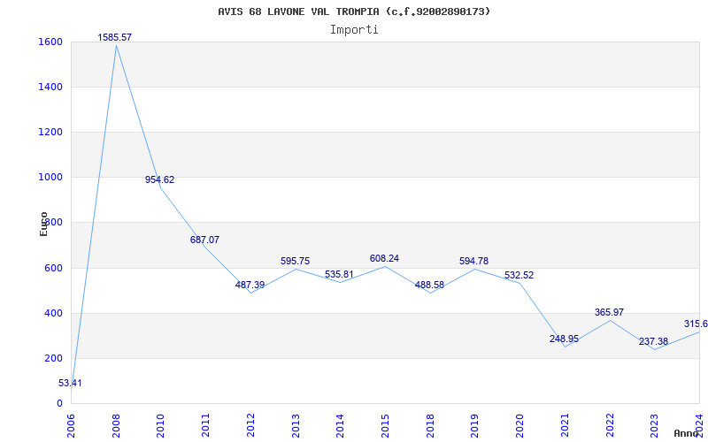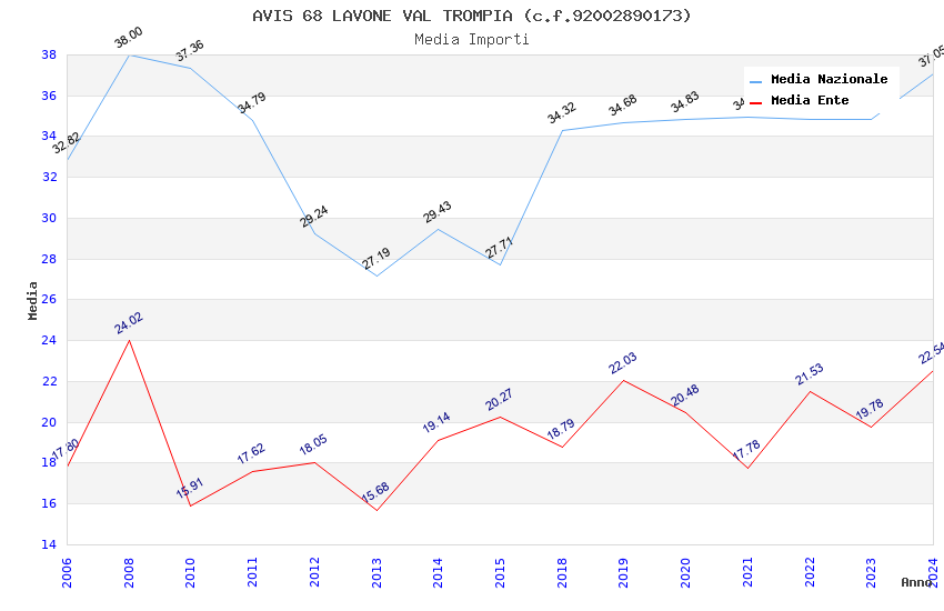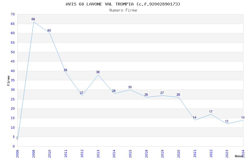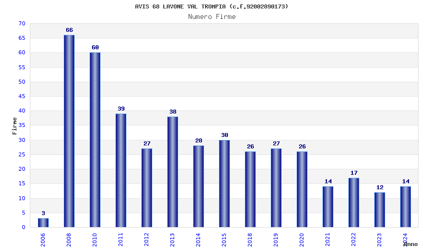 | Anno | Firme | Importi | Media | Naz. | Reg. | Prov. | Comu. |