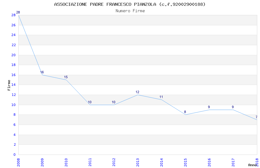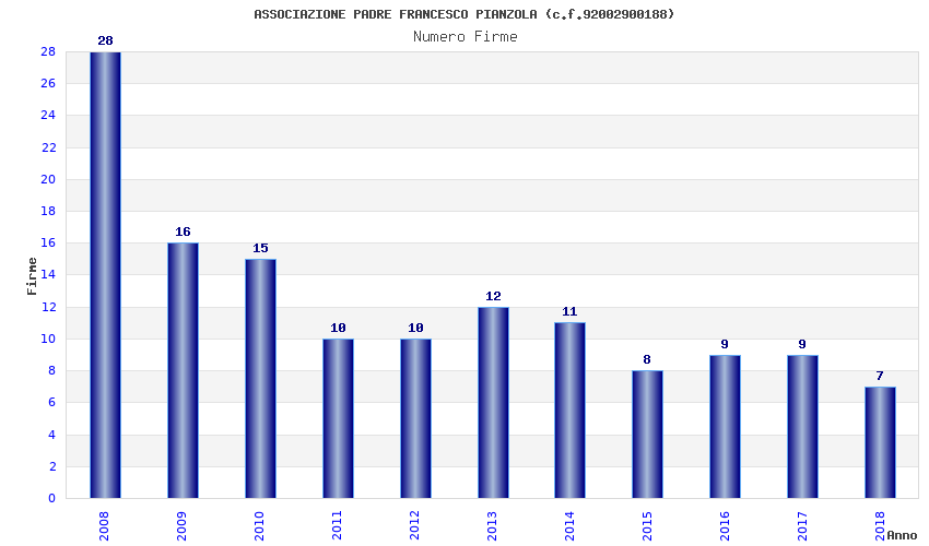 | Anno | Firme | Importi | Media | Naz. | Reg. | Prov. | Comu. |