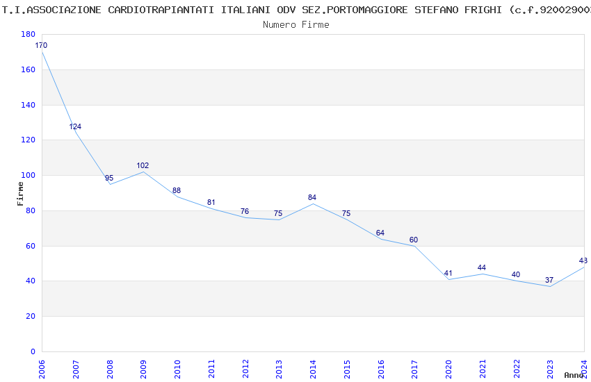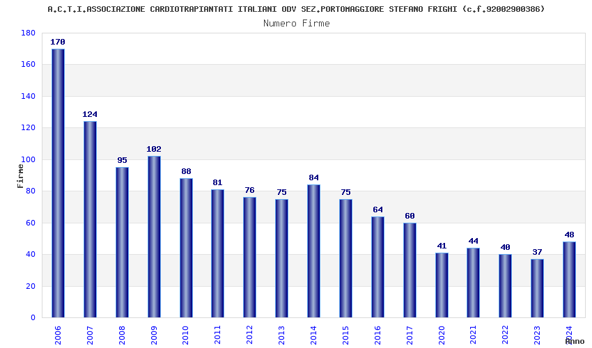 | Anno | Firme | Importi | Media | Naz. | Reg. | Prov. | Comu. |