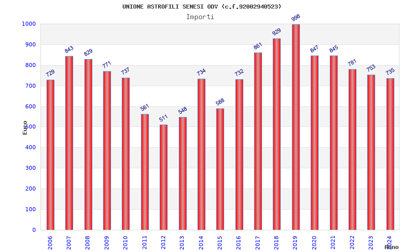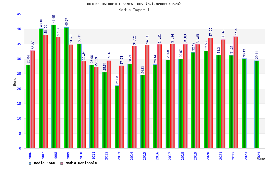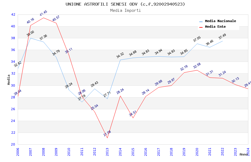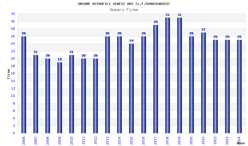 | Anno | Firme | Importi | Media | Naz. | Reg. | Prov. | Comu. |