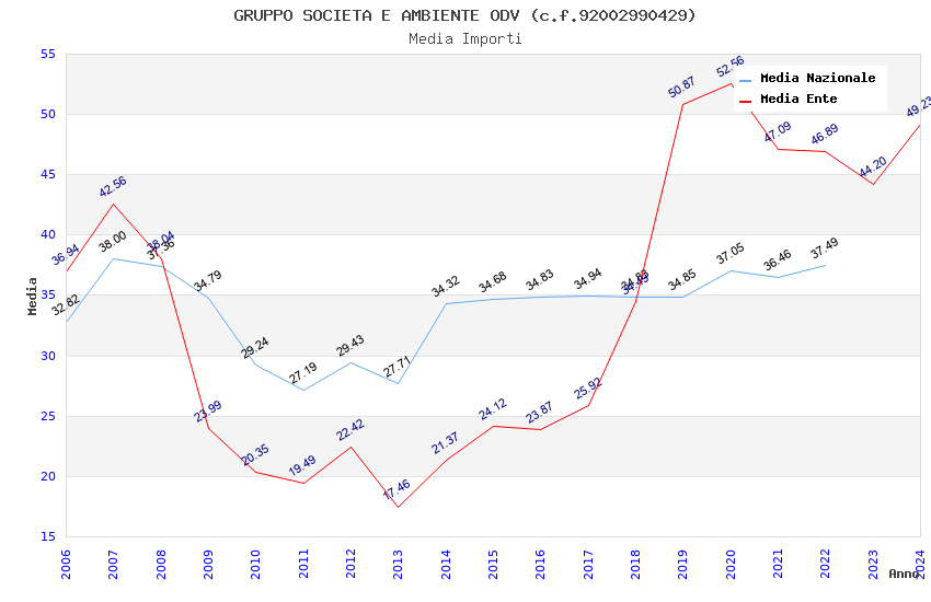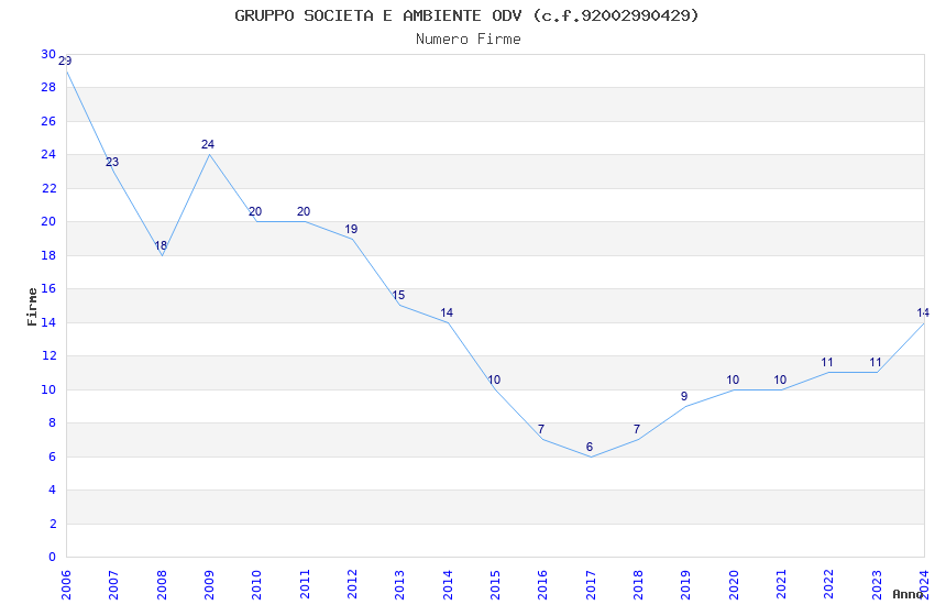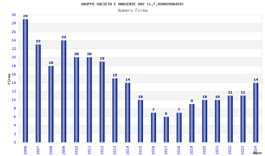 | Anno | Firme | Importi | Media | Naz. | Reg. | Prov. | Comu. |