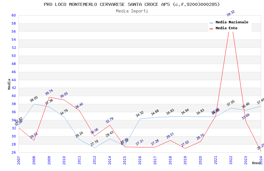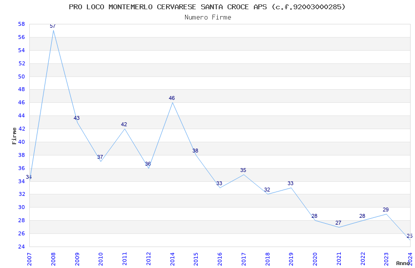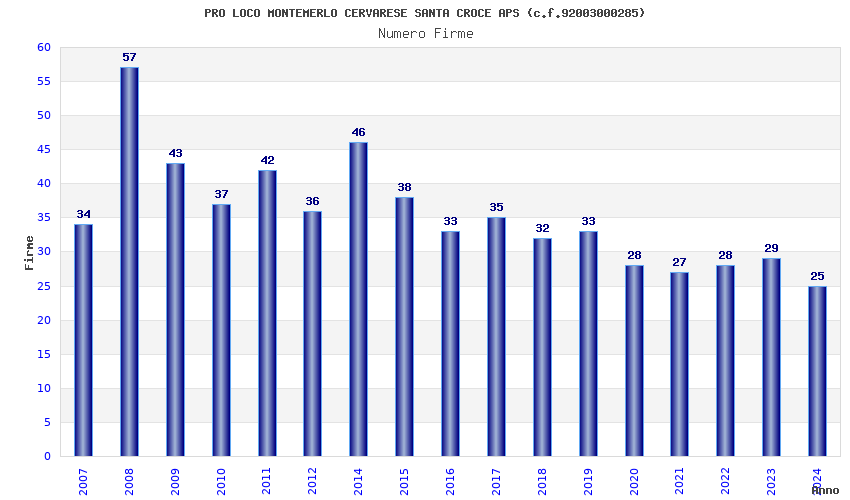 | Anno | Firme | Importi | Media | Naz. | Reg. | Prov. | Comu. |