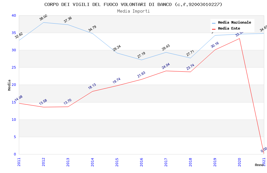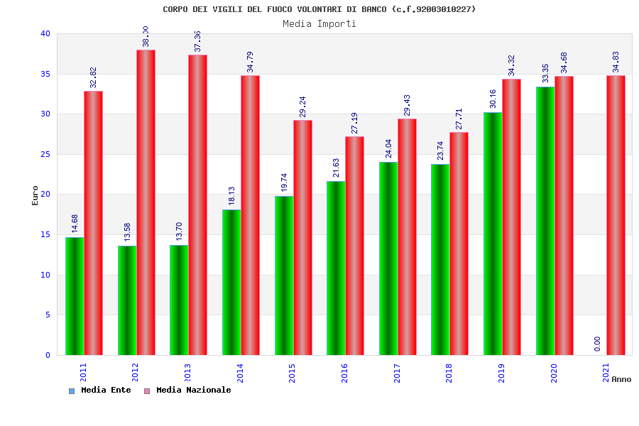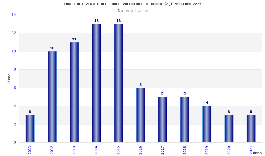 | Anno | Firme | Importi | Media | Naz. | Reg. | Prov. | Comu. |