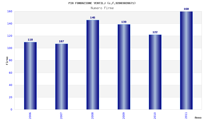 | Anno | Firme | Importi | Media | Naz. | Reg. | Prov. | Comu. |