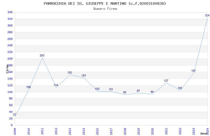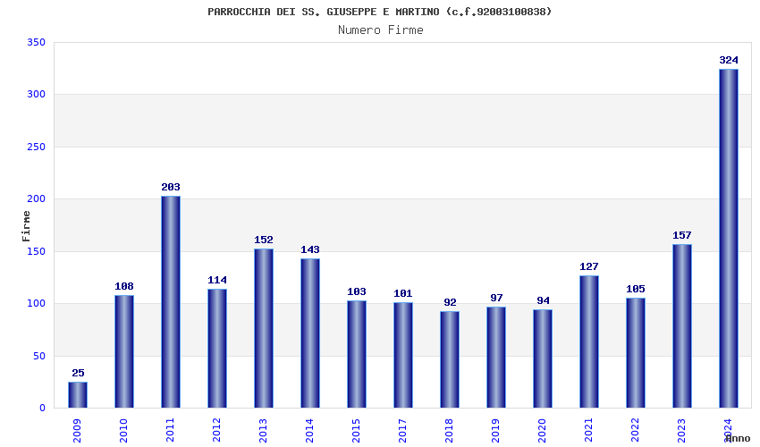 | Anno | Firme | Importi | Media | Naz. | Reg. | Prov. | Comu. |