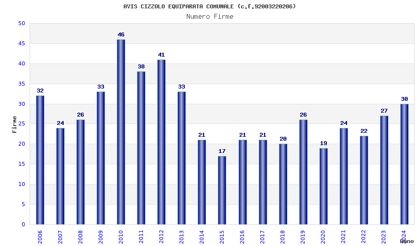 | Anno | Firme | Importi | Media | Naz. | Reg. | Prov. | Comu. |