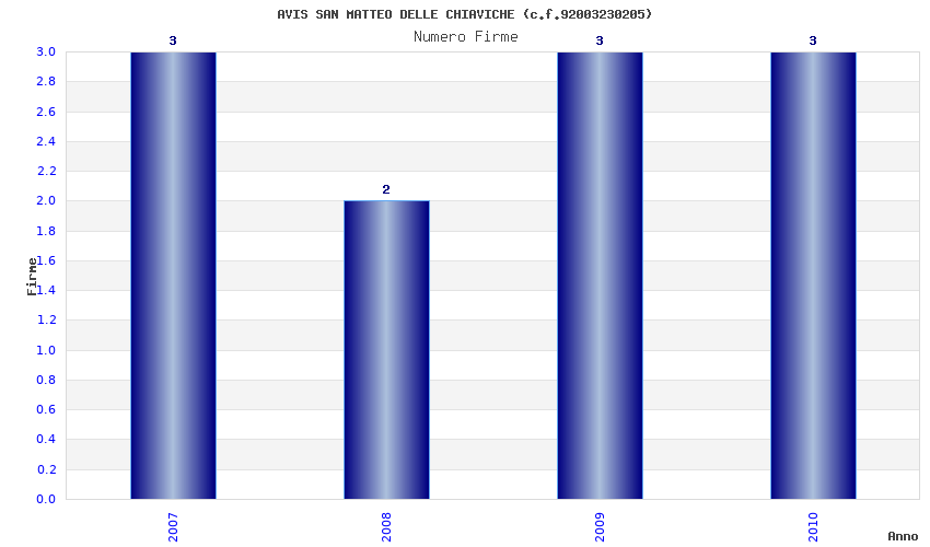 | Anno | Firme | Importi | Media | Naz. | Reg. | Prov. | Comu. |