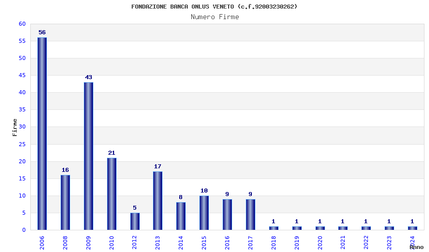 | Anno | Firme | Importi | Media | Naz. | Reg. | Prov. | Comu. |