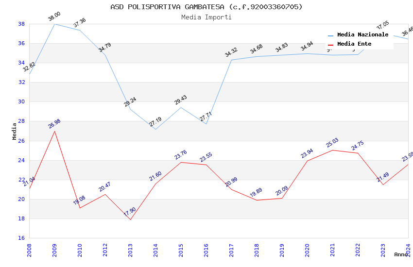 | Anno | Firme | Importi | Media | Naz. | Reg. | Prov. | Comu. |