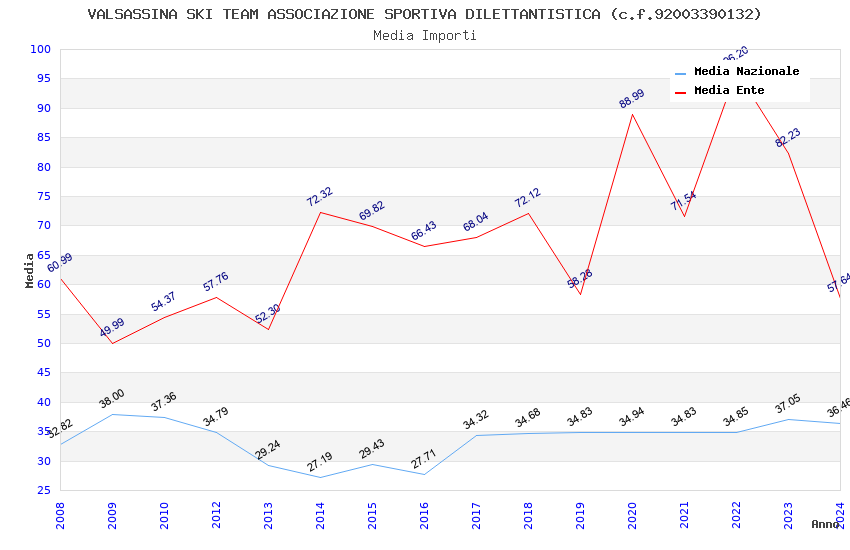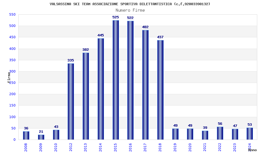 | Anno | Firme | Importi | Media | Naz. | Reg. | Prov. | Comu. |